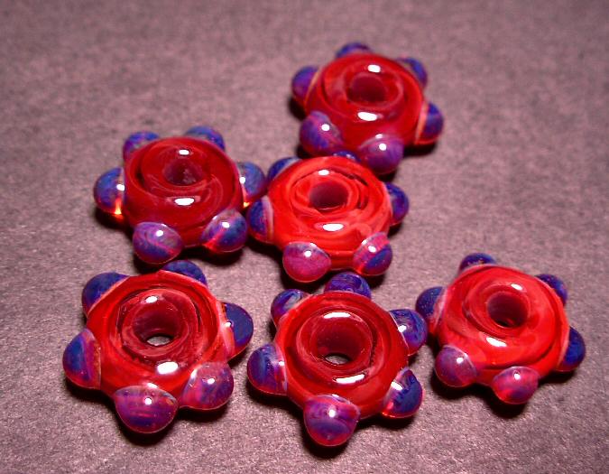 Purple Orange Blast Sprockets Handmade Lampwork Spacer Beads